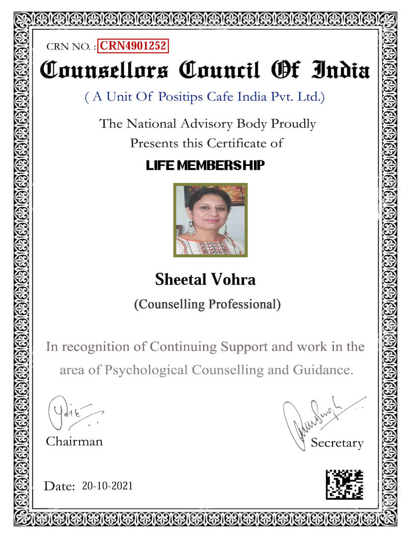 I am a Life Member of the Counsellors Council of India (CCI) and the Association of Psychotherapists and Counsellors Singapore (APACS). Every session is an opportunity to create a ripple—of hope, healing, and growth.